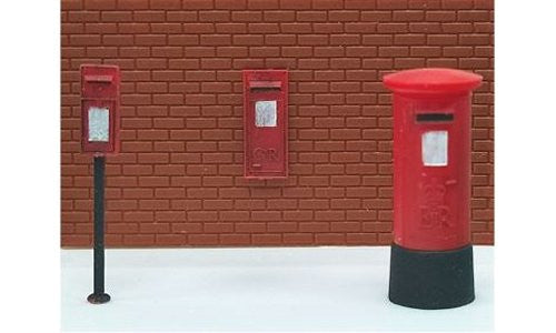 MODEL SCENEPack contains simple kits to make 6 Post Boxes; 2 Pillar, 2 Post Mounted, 2 Wall Mounted. Simple painting is required for realism.