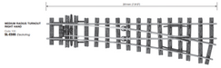 Peco SL-E595 O-16.5 Turnout, Medium Radius, Right Hand