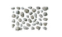 Rocks range in size from smallest: 1/4" L x 3/8" W x 3/8" H to largest: 1 1/4" L x 3/4" W x 3/8" H